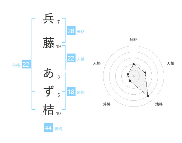 兵藤 あず桔さんを姓名の画数から五運を鑑定
