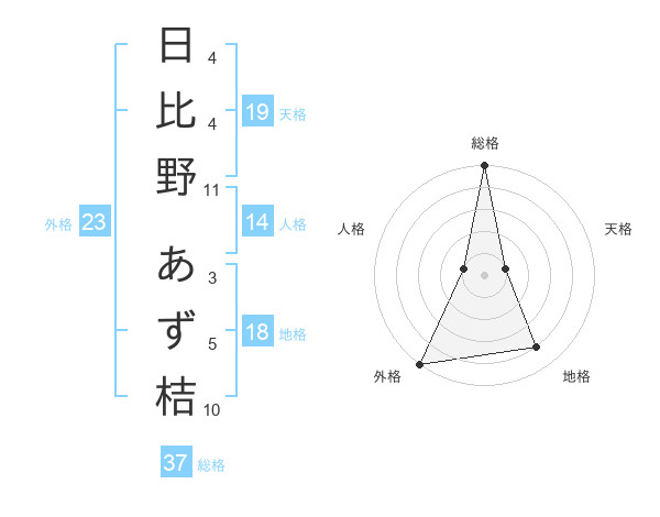 日比野 あず桔さんを姓名の画数から五運を鑑定