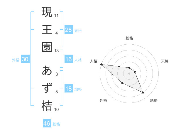 現王園 あず桔さんの天格は28画の1点!