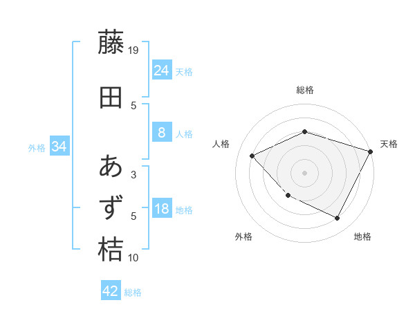 藤田 あず桔さんを姓名の画数から五運を鑑定