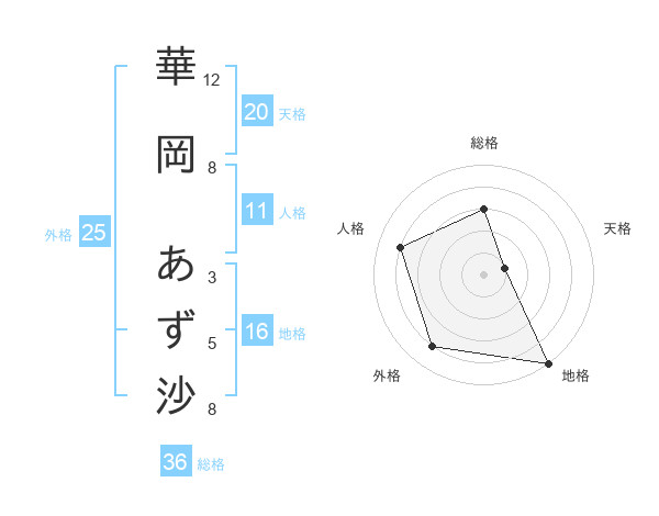 華岡 あず沙さんの天格は20画の1点!