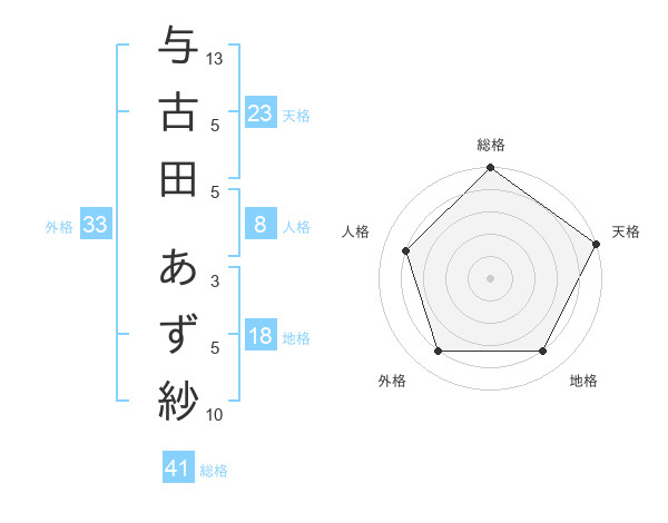 与古田 あず紗さんを姓名の画数から五運を鑑定