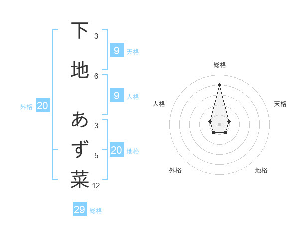 下地 あず菜さんを姓名の画数から五運を鑑定