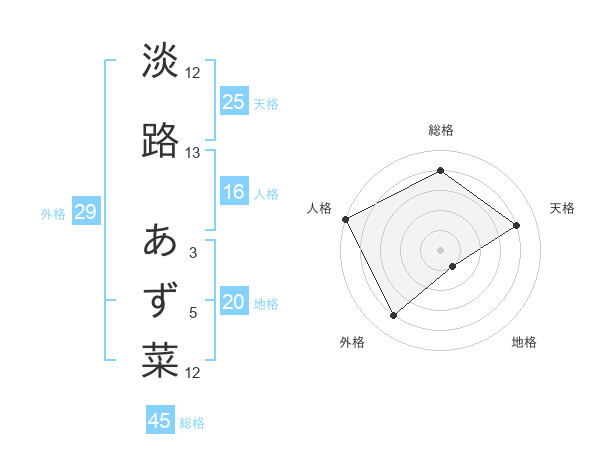 淡路 あず菜さんを姓名の画数から五運を鑑定