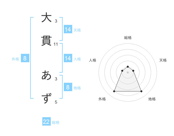 大貫 あずさんの総格は22画の1点!
