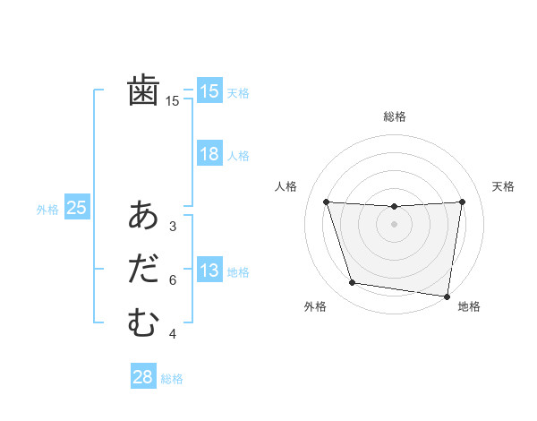 歯 あだむさんの総格は28画の1点!