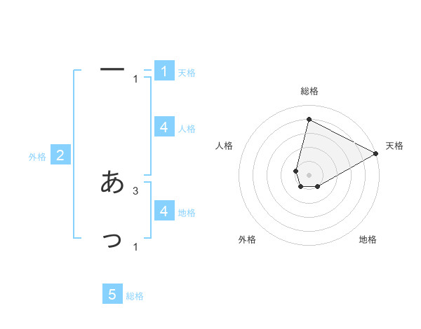 一 あっさんの総格は5画の4点!