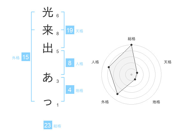 光来出 あっさんの総格は23画の5点!