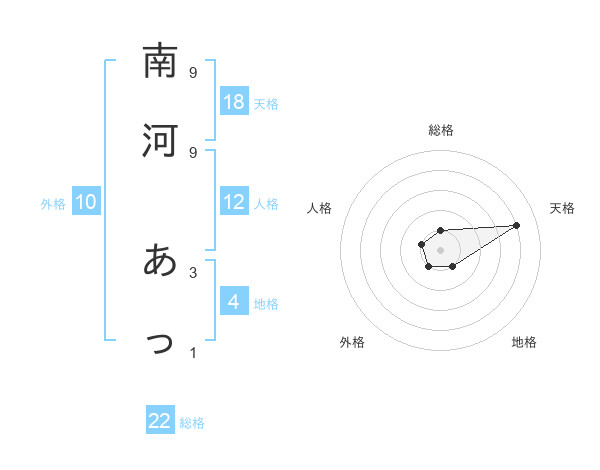 南河 あっさんの天格は18画の4点!