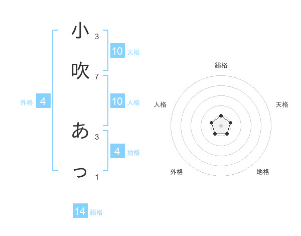 小吹 あっさんの総格は14画の1点!