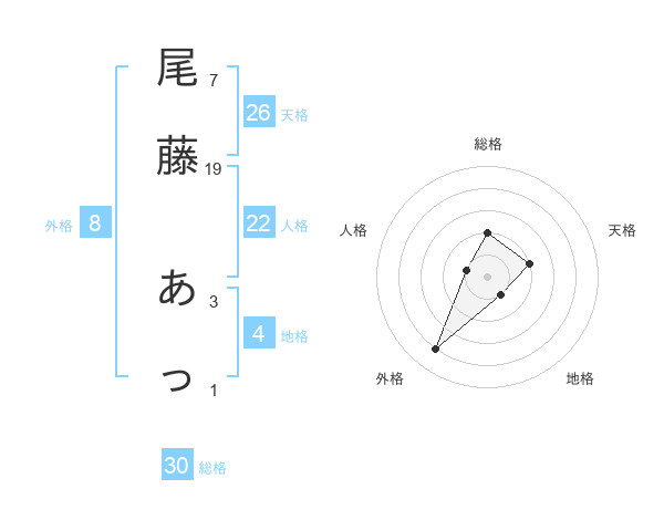尾藤 あっさんを姓名の画数から五運を鑑定
