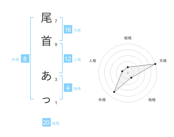尾首 あっさんの総格は20画の1点!