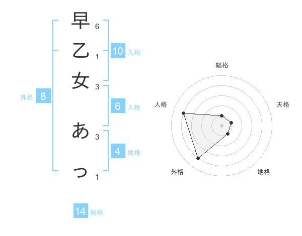 早乙女 あっさんを姓名の画数から五運を鑑定