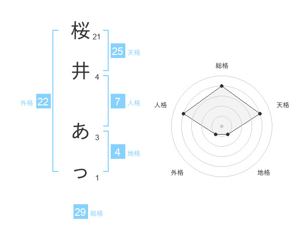桜井 あっさんの総格は29画の4点!