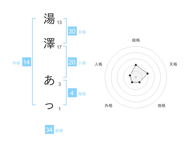 湯澤 あっさんの総格は34画の2点!
