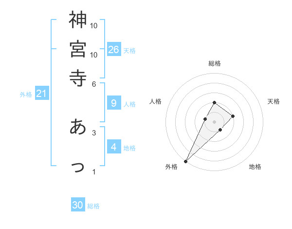 神宮寺 あっさんの総格は30画の2点!