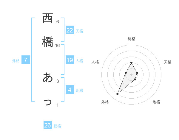 家系が持つ宿命的な運勢を表します。祖先から受け継いだ苗字ですので自分の力が及びません。家柄を象徴します。