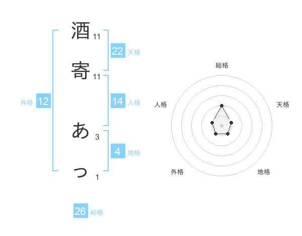 酒寄 あっさんを姓名の画数から五運を鑑定