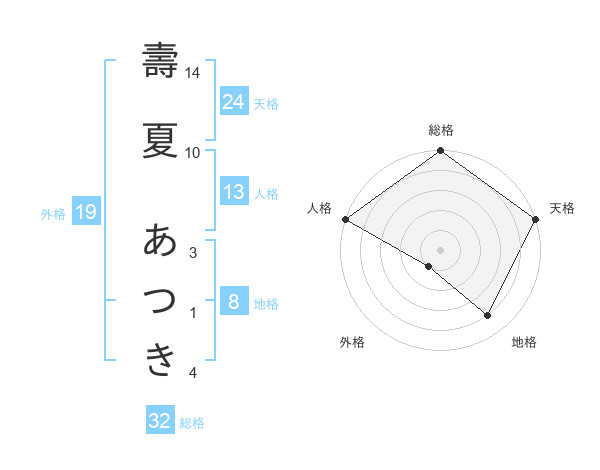 壽夏 あつきさんの総格は32画の5点!