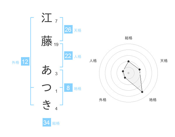江藤 あつきさんを姓名の画数から五運を鑑定