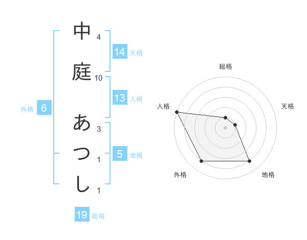 中庭 あつしさんを姓名の画数から五運を鑑定