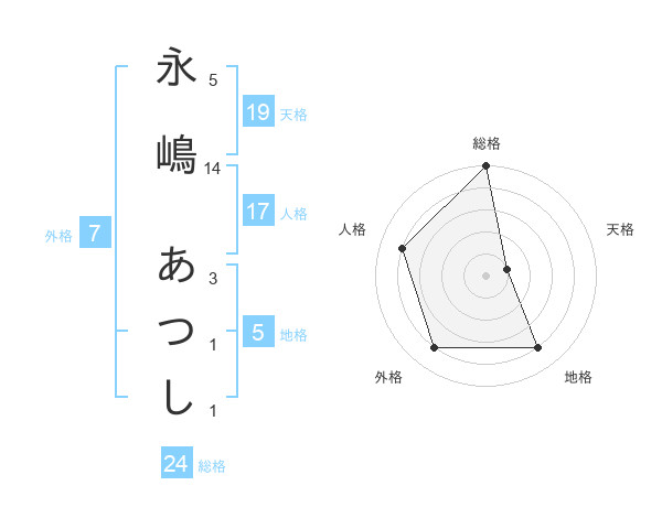 永嶋 あつしさんの総格は24画の5点!