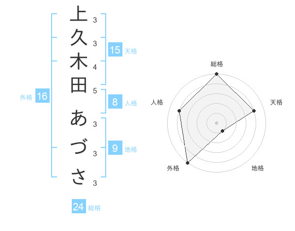上久木田 あづささんを姓名の画数から五運を鑑定