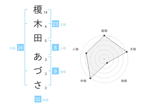 榎木田 あづささんを姓名の画数から五運を鑑定