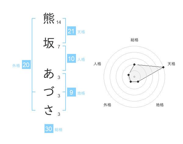 熊坂 あづささんの総格は30画の2点!