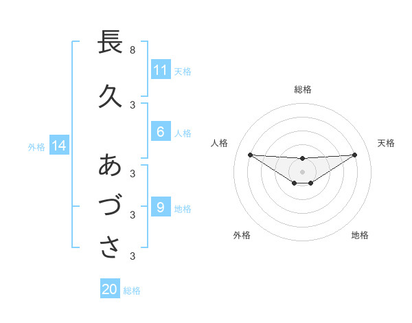 長久 あづささんの総格は20画の1点!