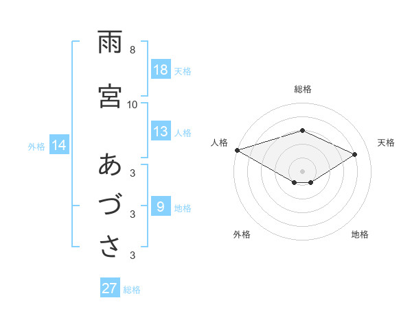 雨宮 あづささんを姓名の画数から五運を鑑定