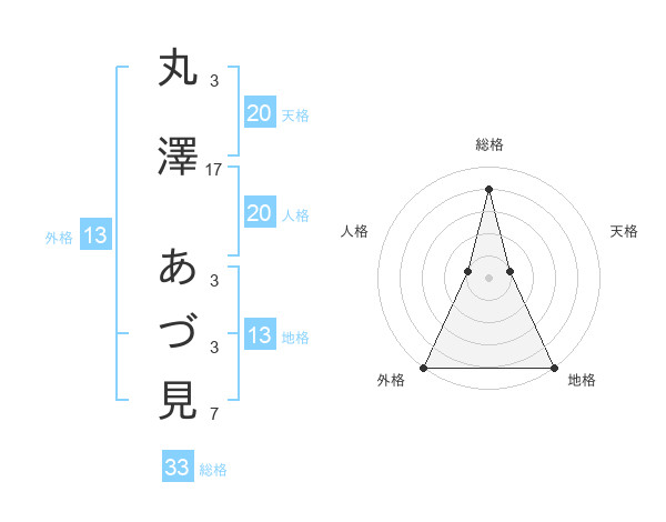 丸澤 あづ見さんを姓名の画数から五運を鑑定