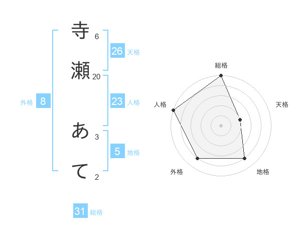 寺瀬 あてさんの総格は31画の5点!