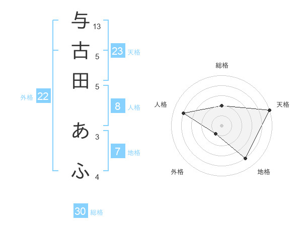 与古田 あふさんの天格は23画の5点!