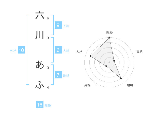 六川 あふさんの総格は16画の5点!
