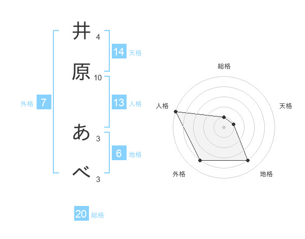 占い結果は姓名判断である以上、良い場合も悪い場合もありますが、決してお名前を誹謗中傷するものでなく、画数の自動計算によって得られたものです。また、本サイトの検索によって得られた鑑定結果で、第三者を誹謗中傷したり名誉を棄損するような行為を禁じます。