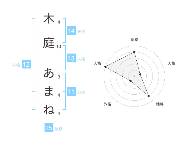 木庭 あまねさんの外格は12画の1点!