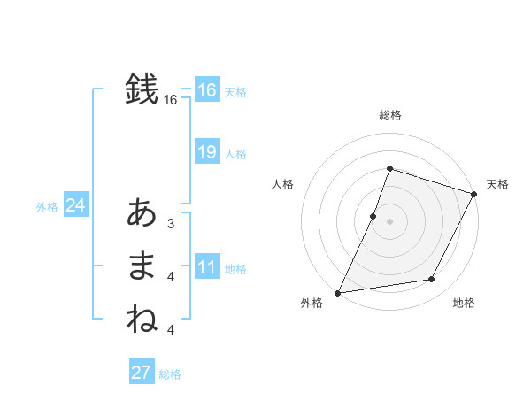 銭 あまねさんの総格は27画の3点!