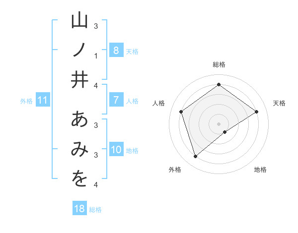 山ノ井 あみをさんを姓名の画数から五運を鑑定