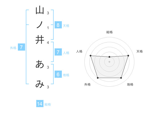 山ノ井 あみさんを姓名の画数から五運を鑑定