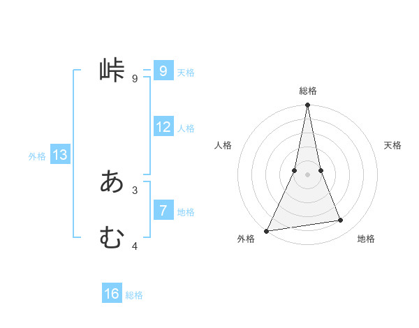 峠 あむさんの外格は13画の5点!