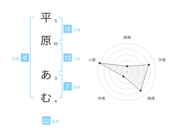 平原 あむさんの総格は22画の1点!