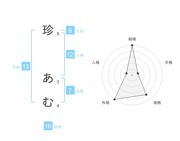 珍 あむさんの外格は13画の5点!