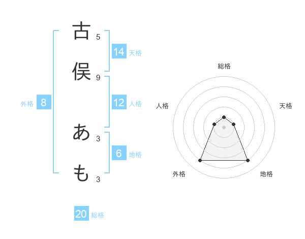 古俣 あもさんの総格は20画の1点!