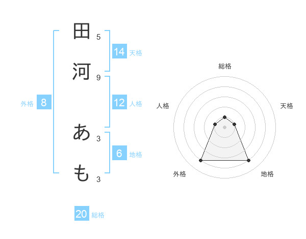 田河 あもさんの外格は8画の4点!