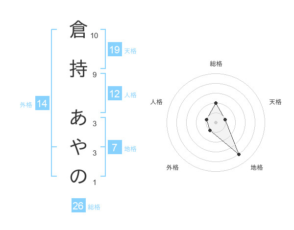 倉持 あやのさんの地格は7画の4点!