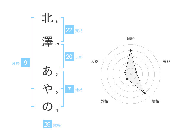北澤 あやのさんを姓名の画数から五運を鑑定