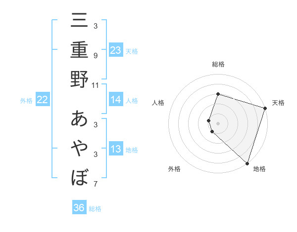 三重野 あやぼさんを姓名の画数から五運を鑑定