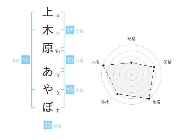 上木原 あやぼさんを姓名の画数から五運を鑑定