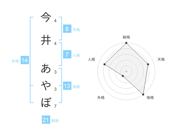 今井 あやぼさんを姓名の画数から五運を鑑定